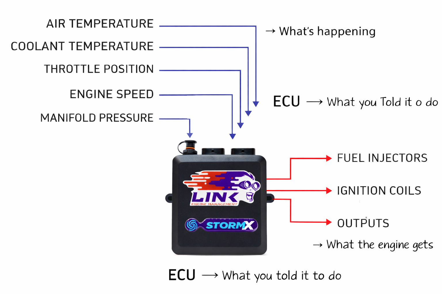 An ECU does not “know” what an engine wants — it executes the strategy it has been programmed with, using available inputs.